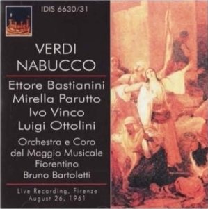That does indeed apply at times here, but in this case the set’s virtues are more than sufficient to outweigh that aspect. Usually recordings of this opera are dominated by the Abigaille, Nabucco’s supposed daughter, for whom Verdi wrote music which graphically encapsulates her fierce will and ambition. Mirella Parutto, an artist I have not heard before, is certainly as equal to the difficulties of the role as are most of its recorded exponents and she makes a very positive impression. However she is partnered by an even more magnetic performance of the title role by Ettore Bastianini. His firm and distinctive voice