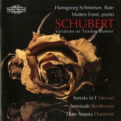 The lives of the four composers represented here more or less overlapped and Donizetti and Schubert were born the same year. Theirs is also the music originally written for flute and piano. Mozart declared openly that he didn’t like the sound of the flute but he still managed to write the delectable concerto for flute, harp and orchestra (K 299). The sonata opening this disc is one of the six for piano and violin that were published in 1781 as his Op. 2. It works well for flute but there is more ‘bite’ in the tone of a violin. I put on Henryk Szeryng and Ingrid Haebler immediately after and the dynamics are wider. Hansgeorg Schmeiser has brilliantly beautiful flute tone and plays the first movement with elegance and verve. In the andante the two instruments intertwine gracefully. The rondo finale could be a preliminary study for the aria Ein Mädchen or Weibchen from Die Zauberflöte. One gets the same open-air feeling. A very charming reading.