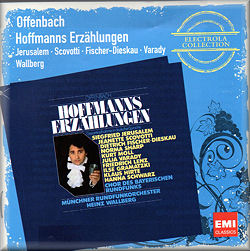 Here is a fascinating issue. It is Hoffmann in the form that it was once always known and performed, that is, it uses the edition prepared by Ernest Guiraud after the composer’s death; he performed a similar service for Carmen with equally dubious results. In recent years other editions have been appearing which attempt to show more accurately what the composer’s intentions may have been. That by Fritz Oeser, published in 1977, soon established itself and it will soon be followed by one from Jean-Christophe Keck and Michael Kaye. Both make use of a vast array of new material but inevitably even then many subjective decisions have to be taken. It is simply not possible to be entirely sure as to how the composer might have completed his final version of the opera. The edition used by Wallberg was that which held the stage for about a hundred years. It has many merits, especially if the final scene is extended to include the appearance of the Muse as is done here. Its major defect is the reversal of the Giuletta and Antonia Acts. The listener could simply play these parts of the discs in reverse order which would to a degree get over this problem.