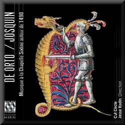 L'homme armé was one of the most popular in the renaissance, and was often used as cantus firmus for mass settings. This production includes two, one by De Orto and the well-known setting by Josquin. In his liner-notes Jesse Rodin explains that both settings are technically complicated. He notes several remarkable features in De Orto's setting, such as the fact that the cantus firmus is quoted in all voices. There is also reference to metrical irregularity which turns up time and again. The latter often "effects a continuous hemiola, as in the Christe (...), where the tenor sounds as if it is constantly "off the beat" even though it is really just "on" its own, separate beat". De Orto's compositions are also characterised by a particular density, such as