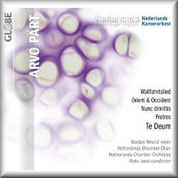 The basic concept is mathematical – variations on a chant-like theme. The result is as hypnotic as any of Pärt’s music. Though it’s the earliest of the works here, it heraldedPärt’s ‘new’ style and is perfectly in keeping with the rest of the music. Though Joost is a little faster than on his earlier recording in most of the music on Globe, he’s slightly slower than the performance of the strings and percussion version of Fratres on The Very Best of Arvo Pärt, an inexpensive EMI twofer which Rob Barnett praised – review. RB speaks of the Tallis-like intensity of the music – perhaps he was thinking especially of the Vaughan Williams Tallis Fantasia, which this performance certainly brings to mind. I can’t imagine the music being better done.