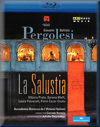 Pergolesi died very young even by composer standards. He makes Schubert and Mozart seem like old men, dying of TB at the age of just 26. The present work was his first opera seria written when he was just 21 and he managed to write another three opera seria plus a small handful of comic intermezzi before his death just five years later. Queen Maria Amalia of Naples described him in 1738 as 'a great man' and insisted on performances of his music continuing after his tragically early death. The most well known of his operatic works is La Serva Padrona and possibly his best known composition a setting of the Stabat Mater. In the 1960s and 1970s works by Pergolesi were nearly always simply 'attributed' to him and many orchestral and instrumental pieces have since been reassigned to other composers. It is a curious sidelight on Pergolesi's reputation that Stravinsky believed he had based his Ballet for voices and small orchestra, Pulcinella on fragments of works by Pergolesi extracted from the archives by Diaghilev. As it turns out this was not the case, the music was mostly by Gallo, Wassenaer and others, but by the time this was discovered, the name of Pergolesi was written back into musical consciousness. A visit to the website of the Fondazione Pergolesi Spontini whose festival was responsible for the present performance of La Salustia shows how musicologists have now reliably sorted this situation.