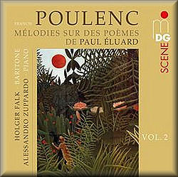 MDG have found a real vein of gold with Holger Falk. His vocal tone is gorgeously modulated and very easy on the ear, projecting the texts entirely comprehensibly, rhythmically on the spot, nailing every interval and intonation and taking Poulenc’s varied moods without a trace of strain. You can take any song at random and pick out his abilities in expressing the texts, but something like the miniature Un roulette couverte en tuiles from the cycle Tel jour telle nuit covers numerous bases. The darkness, scary accents and dolorous descending lines are done with a great deal of character, the drama of the conclusion a genuine shocker. Zuppardo’s accompaniment is here as always superbly sensitive, every bit as musically informative as the vocal line and technically faultless.