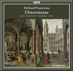 Here is an example. The justly-renowned and respected specialist group is from Bremen in north Germany and is named after the Renaissance in and of that region. Weser-Renaissance performs Praetorius' Ostermesse (Easter Mass) under the dozen-and-a-half-strong group's energetic and highly knowledgeable director Manfred Cordes.
