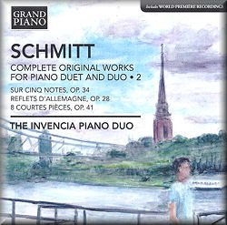 Prior to World War I Schmitt wrote three suites for piano four-hands, each based on a five-note motif that is never altered throughout the suite. Two of these are recorded on this disc, both world-premiere recordings. It is a tribute to Schmitt’s skill that he is able produce music of such variety while keeping to his self-imposed strictures.