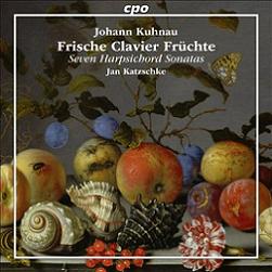 Historical importance must be attached too to the seven sonatas constituting the 'Frische Clavier-Früchte', or 'Fresh Keyboard Fruits', for Kuhnau is generally credited as the first German to write sonatas exclusively for the keyboard, and thus an influence on glorious generations to come - not least Bach. The Fruits were published slightly earlier than the Biblical Sonatas and are, as the title suggests, more intimate in scale. Kuhnau himself reveals in his preface that he wrote them at a rate of one a day over a period of a week, and warns the listener "daß sich Niemand eine grosse Rarität dabey versprechen solle" - "that no one expect any great rarity in them". This turns out to be pure modesty - these seven magical sonatas contain some of the most delectable keyboard writing of this or indeed any era.