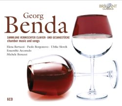 The bulk of musical responsibility is undertaken by harpsichordist Michele Benuzzi who shows a fine appreciation of Benda’s quirks and qualities. He plays on a 2005 copy of a 1748 Philip Jakob Specken instrument. A lot of hard editorial work has gone into this set – transcription, questions of pronunciation, and matters of interpretation and so on. This six-CD box is nicely structured to present little self-contained ‘programmes’ – sonatas, followed by sonatinas, or else interspersing songs, or arias. But I calculate that, with a bit of re-jigging, those six CDs could have been reduced to four. Leaving that to one side, the notes are helpful though rather brief.