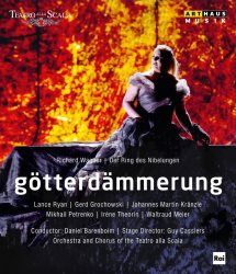 Whether the cycle, with its changes in casting from one evening to the next, really works as a whole is more doubtful; but what success it has in this area is clearly down to the conducting of Daniel Barenboim. He conjures marvellous sounds from the La Scala orchestra, time and again illuminating elements in the score that are often concealed. In the final pages, which he gets exactly and rightly balanced in a manner I had despaired of ever hearing, he keeps the brass statements of the Valhalla theme down at the beginning, to allow them to build over their successive modulations in the precise way that Wagner clearly intended with his reiterated markings of immer stärker. This also allows the statement of the rising and falling Götterdämmerung motif in the lower reaches of the orchestra, so often obscured, to come across with the full weight needed to make the counterpoint work. The otherwise admirable Reginald Goodall, with a weaker orchestral bass section, fails to make this ‘tell’ properly in his live English National Opera recording. Barenboim rightly has no truck with the spurious insertion of a Luftpause just before the final bars, allowing the Redemption motif to rise above the continuous descending bass line which underpins it and achieving a cathartic climax.