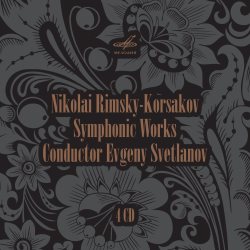 reviewed a 6-CD box of Svetlanov’s Rimsky back in 2009. That set, issued by the conductor’s widow Nina-Nikolaeva Svetlanova, is pretty comprehensive; indeed, it contains many of Rimsky’s slighter works, some performances of which are recommendable and others not. The four CDs in this new Melodiya box are presented in sturdy sleeves, which is a great improvement on the cantilevered jewel case of the earlier set that pinched and unseated discs at the slightest provocation. The sound of those CDs was poor to good, so I hoped these re-masters would improve on that.
