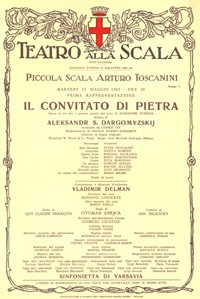 It may be noticed that these engagements with Italy’s “top two” came early in his Italian career. It seems strange that he lived in Milan all those years without conducting a single opera at La Scala, but there it is. He was offered the chance to conduct some ballet there but refused because the rehearsal time was too little. A more pragmatic conductor might have accepted as a way of getting a foot in the door – Delman’s obtuseness got in his way once more. He did, however, conduct 12 performances of Darghomyzhky’s “The Stone Guest”, between 17 May and 3 June 1983 at the Piccola Scala. This theatre, no longer operating, was an offshoot of La Scala which presented works for smaller forces.