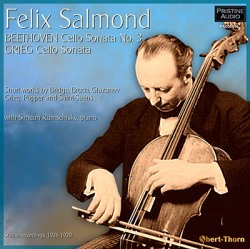 He did record the Schubert Trio in B flat with Jelly d’Aranyi and Myra Hess in New York (Pristine Audio has released their transfer on PASM 083), but his recording career in the studios ended in 1930. The examples here come from his American years, 1926-29, and therefore exclude the acoustic Vocalions he had made back in London. These sonata recordings are probably his two most important statements and so far as I know they were the first-ever recordings made of these pieces. The pianist throughout is Simeon Rumschisky. Beethoven’s Op.69 Sonata allows one to hear the elegant and refined cast of his playing, with its well-focused tone, his shifts being natural and effortless, portamentos being subtly applied and not endemic. In many ways he is a very modern-sounding Beethovenian cellist in terms of his expressive devices. The Grieg sonata is a shaggier beast, its folkloric hues needing quite a firm hand on the tiller, especially in the outer movements. This it receives in this 1927 recording in which an unsentimental but rhythmically vital approach works very well. Salmond doesn’t downplay the reflective B section of the first movement but he plays it with a kind of rigorous gentleness far from the somewhat glutinous way it has sometimes subsequently been taken on disc. Even in the more extended paragraphs of the finale no phrase is over-stretched.