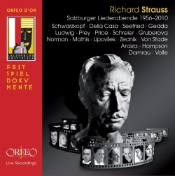Eighteen singers – eight sopranos, three mezzo-sopranos, four tenors and three baritones - in fifty songs; six of them sung twice by different singers and selected from live performances ranging from 1956 to 2010. This well-filled, two-disc compilation represents an excellent cross-section of Strauss singing over fifty-four years of songs written mainly in the earlier part of his career, pre-1919.
