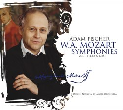 Adam Fischer’s Mozart symphony cycle concludes with the last symphonies, and it does so in terrific style. These are performances which rank among the best played on modern instruments: they may be played on today’s strings and winds, but they have quick tempos, sharp and snappy rhythms and many repeats intact. The timpanist pounds thrillingly with hard sticks; the conducting makes Mozart more of a fiery human and less of a powder-wigged demigod; the acoustic responds with a barely-tamed echo. The result is Mozart symphony performances which feel human, but like a jolly, effusive human, the type you meet at a party or see on TV and describe as being “larger than life”. If Karl Böhm’s Mozart is a Roman god sculpted from marble, Adam Fischer’s Mozart is out back sipping wines with Bacchus.