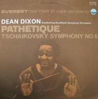 In Tchaikovsky’s 6th Symphony, the “Pathétique”, set down with Dixon’s own Hessian Radio Symphony Orchestra, the conductor offers a performance totally free of egoism or self-indulgence. Tempi are steady and firmly maintained unless specifically authorized by the score. All this, however, is combined with eloquent phrasing and sheer gut commitment. The results are overwhelming, even in a recording with severely compressed dynamic range. If the conductor had been someone like Horenstein, this disc would have been acclaimed years ago as one of the great recordings of this symphony (Everest SDBR 3346, issued 1963).