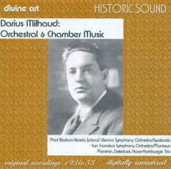 The same sort of relaxed enjoyment informs the remaining items. I wondered if the “3 Rag Pieces” weren’t a tad slow, but we clearly have an important glimpse at the early performing history of Milhaud’s works. The more so when the disc also contains the Suite for violin, clarinet and piano, op.157b, played by Jacques Parrenin, Ulysse Delécluse and Annette Haas-Hamburger (c.1952), the Little Chamber Symphony no.3 op.71 with Walter Goehr conducting a crack group consisting of Jean Pougnet (violin), Anthony Pini (cello), Paul Draper (bassoon) and George Eskdale (trumpet) (1936), and the Symphonic Suite no.2 “Protée” op.57 in Pierre Monteux’s San Francisco SO recording (1945). The transfers are by Andrew Rose. He has extracted a remarkably clean, clear and pleasing sound-picture from these old recordings with only an occasional trace of the huskiness that can emerge when too much denoising is applied.
