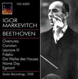 The best of the performances is Coriolan: Markevitch realises its taut drama effectively, and he knows to hold down the moving eighth notes under the second theme, avoiding the textural clutter that can afflict even high-profile performances (cf. Stokowski/RCA). Namensfeier rolls along in a buoyant 6/8 meter, though, without consulting a score, I wasn't entirely convinced that all the dissonances I was hearing were Beethoven's. The introduction to Egmont is suitably broad and weighted, and the main Allegro nicely balances propulsion and gravitas; the conductor tightens the screws for the Allegro con brio, which occasionally threatens to run away.