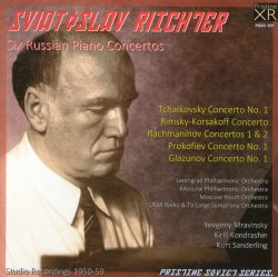 Fanfare magazine from March/April, 1990 concerning a previous reissue of this recording of the Tchaikovsky First. There Leslie Gerber commented “I have long remembered this as the great Richter performance of the Tchaikovsky concerto ... while Richter’s playing is magnificent, Mravinsky and the great orchestra second him superbly.” The sound was noted as being “as good as one could hope for ... still limited in fidelity and has some traces of distortion.” The producer Andrew Rose then explains the technical difficulties he had. The results were made possible by using near-mint German reissues from which he has managed to remove most of the distortion. Like an art restorer he has uncovered and revealed a sound superior to anything that had been available on the original releases. He was able to do this even bearing in mind that the earliest recordings here were on 78 rpm shellac discs. These were still being sold alongside the earliest LPs when I first visited Moscow in 1961. Taking this together with the additional fact that several recordings here are the sole ones by Richter, particularly notable in the case of the Rachmaninov First, and you have a remarkable and highly valuable document of superb music. It’s thrillingly played by one of the true lions of the keyboard.