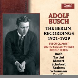 The Swiss label Guild is to be commended for bringing together for the first time, on this two-CD set, the complete recordings Adolf Busch made in Berlin between 1921 and 1929. The first recordings were made for the independent label Deutsche Grammophon Aktiengesellschaft, after it separated from HMV following the First World War. He would probably have begun his recording career earlier if it hadn’t been for world events which coincided with the launch of his professional career. He was twenty-nine at the time and initially contracted to record six items, but their success and popularity lead to a further twelve and eight more with his string quartet. For the piano-accompanied items, the pianist employed was Bruno Seidler-Winkler (1880-1960), none other than the company’s musical director. All the sessions took place in Berlin, where Busch lived at the time.