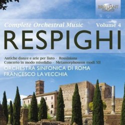 This is volume 4 of Brilliant Classics' survey of Respighi's complete orchestral music. It includes the splendid Ancient Airs and Dances coupled with the attractive Rossiniana Suite. Metamorphoseon modi XII is a masterpiece and a real discovery, for me at least. The concerto has less appeal.
