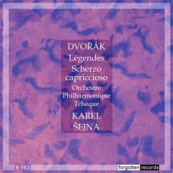 Karel Šejna’s 1956 LP recording of the Legends has already been reissued by Supraphon at least once [SU1919-2] coupled with the Symphonic Variations, which was recorded earlier, in 1952. It didn’t sound especially bright on the LP pressing, but it did sound much better on the Supraphon transfer and similarly here in Forgotten Records’ own transfer where the Scherzo capriccioso, Op.66 has been added as the substantial filler. This was recorded in 1955.
