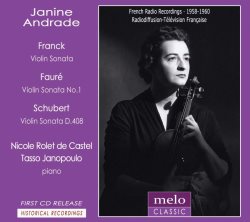 This, in a roundabout way, brings us to Meloclassic’s excavation of three Paris radio broadcasts from the years 1958 and 1960. Franck’s Sonata is played with quite a strong forward impulse in the first and third movements, in particular, and the reading is notable for its sense of tensile directionality. Andrade, partnered by Nicole Rolet de Castel, colours her playing with a few, deftly executed slides. Her tone is a touch wiry and doesn’t evince much tonal breadth, but the moods of the sonata are perceptively judged in a rather small-scale way, a few bowing incidents and intonation questions aside. The Fauré sonata comes from a radio programme ‘in homage’ to the composer. She is very good at varying her dynamics here and though, again, her tone isn’t glamorous or especially personalised, she relies more on exploring detail than promoting colour. Again there are welcome slides, and the recording catches de Castel’s piano action when pedalling. The final sonata is Schubert’s G minor, with veteran accompanist – he had been Thibaud’s recital and disc partner for many years – Tasso Janopoulu. Starting strikingly abrasively and abruptly and with some razory chords, Andrade once more proves excellent at deft articulation and plays Schubert with buoyancy and lively collaborative intelligence.
