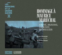 This is volume three of a series called ‘Les Musiciens et la Grande Guerre’, presented in a strong card format. Its purpose is to anthologise music composed during the conflict of the First World War, or shortly before, or shortly after. That, clearly, doesn’t wholly apply throughout the series and it certainly doesn’t apply to Brahms, represented here by his Op.38 Cello Sonata, but this particular release is a salute to the cellist Maurice Maréchal, who served in the army in the First World War and whose famous ‘trench cello’ still exists, though is too fragile to play.