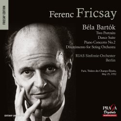 Praga certainly doesn’t make matters easy for itself, or the buyer. On the cover of the booklet it announces the composer and the works in font size significantly smaller than that of the conductor and then it adds a location and date. To be clear: the composer is Bartók, the conductor Fricsay and the place the Théâtre des Champs-Élysées, 25 May 1952 ... or, rather, it isn’t – by which I mean date and location. Praga sets this up - it’s a Centenary Limited Edition, whatever that means (the centenary is Fricsay’s as he was born in 1914) – as a recreation of the performance given in the French capital on that date, though the concert was not recorded. I assume this is the exact same programme performed on that date because whilst the notes devote three columns to ‘Ferenc Fricsay in France’ they say almost nothing about the five visits he made to the country. A programme from the Théâtre des Champs-Élysées is reproduced, but that relates to his final visit years later in 1961 when he accompanied Menuhin. All a bit unsatisfactory and a warning to the unwary prospective purchaser confused by the wealth of Fricsay material now available. I won’t say that the cover is deliberately misleading but it is certainly unfortunate, an impression regrettably reinforced by the back cover; ‘Fricsay conducts Bartók’s Masterpieces in First Audition in Paris’.
