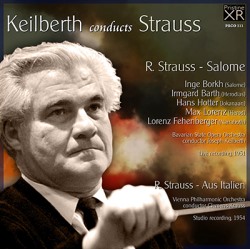Alan Blyth’s review remarks that Keilberth was “one of the last conductors to work with Strauss” — overlooking it would appear the later career of Karl Böhm. Keilberth’s bad habit of savagely cutting Strauss’s scores — as in his available recordings of Die Frau ohne Schatten and Arabella —does little to inspire confidence. In fact Mark Obert-Thorn notes that “there was no available Keilberth recording” to act as a filler, so we have here instead Clemens Krauss’s commercial recording of Aus Italien. This has a most unfortunate side-effect in that the break between discs during the opera has to come during the final bars of Salome’s Dance. This makes for a quite barbarous interruption to the score at one of its dramatic and musical climaxes. Obert-Thorn rightly notes the excellent quality of the original recording for its date, with only the questionably forward percussion balance in the orchestral mix causing concern. Keilberth does obtain a remarkable degree of clarity in his reading of the score, with many details clearly delineated which can sometimes degenerate into a mush.