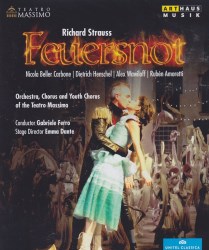 When reviewing the Schirmer CPO CD set of Feuersnot I recommended that version to newcomers in part because it was the only recording to supply a full text and translation. Ernst von Wolzogen’s libretto is no literary masterpiece, and its attempts at humour are often crudely heavy-handed but it helps even more to hear this work with well-handled subtitles, since the music is closely linked to the words. The production often helps to point these attributes up even more clearly. The camera angles are carefully chosen, and with so much going on it is a major tribute to the direction that we miss so little. There is no problem with any decision as to where to break the continuous flow of the music between discs. Indeed this video recording could well be the first point of approach for those previously unacquainted with what is after all a work of Strauss’s highest maturity, and one which even if it does not rise to the heights of the operas which were to follow has many incidental felicities. If the listener programmes the player to omit the opening sequence he or she will be in for a thoroughly enjoyable time.