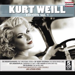 The same observations unfortunately have to be made about what is advertised as a “Kurt Weill edition” which assembles the Capriccio recordings, many of which still remain unchallenged in the catalogues as representative of the works involved. It is impossible to imagine that either Weill or Berthold Brecht could ever have approved of an ‘edition’ which totally sidelines the contributions of the librettist. As I have observed, the original issues again contained the complete texts, which could at the very least have been made available on line – but no reference to such availability is made in the new booklets, and the incidence of spoken dialogue especially in the text by Georg Kaiser for Der Silbersee makes this particularly regrettable. The pages of English notes in the booklets do not even include synopses of some of the works concerned, although these can be located on the webpage of the Kurt Weill foundation. Even so, these are no substitute for the original closely argued and detailed texts. As it is, the value of these reissues is fatally compromised.