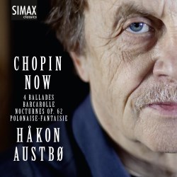 Håkon Austbø is a world-renowned expert in Messiaen, Janáček and Scriabin, three of the piano repertoire’s most adventurous and idiosyncratic harmonists. This means Austbø has an interesting perspective on Chopin, coming from the experimenters and radicals Chopin inspired. That said, this recital does not focus on the Polish composer’s most harmonically adventurous and stark works, like the mazurkas. Maybe that was a missed opportunity—except that this CD is still superb.