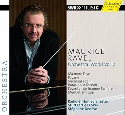 The Mother Goose performance is very good indeed, with a lot of wonderful orchestral detail - like the harp-flute dialogue before the pagoda scene. What’s most impressive is the truly French sound of the SWR Orchestra Stuttgart; after years under Roger Norrington, who asked them to use no vibrato and turned them into a laboratory for his peculiar notions, the SWR band has done a total about-face under Denève. It’s a sign of their extraordinary standards of professionalism. Comparing this disc to the Orchestre National de Lyon Ravel recordings on Naxos, the Stuttgart players sound far better than the French. My only complaint about Mother Goose: right at the very end, you can’t hear the sweeping harp glissandi that are half the fun. This is most audible on Jean Martinon’s classic EMI album.