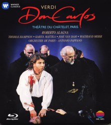 This is currently the single French version in the catalogue on Blu-ray. Under the title Don Carlo there are several Blu-rays sung in Italian. Directed by Luc Bondy with Roberto Alagna in the title role this Blu-ray contains the restored original 1867 Paris version of the opera which is given an outstanding and memorable performance and one not short on high drama.