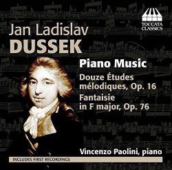 The Études are making their first-ever appearance on disc, whereas the companion Fantaisie in F major has been recorded before. By 1811 the peripatetic Dussek was living in Paris, and nearing the end of his life. The Fantaisie was one of several large-scale pieces he wrote during these final years. Hummel might well be a precedent for a work that sites its occasionally discursive moments within a firm structure. Very helpfully, as it often does, Toccata has separately tracked the various structural moments through which this half-hour work journeys, starting with its Grave introduction and ending with a Polacca. The play of light and darker elements is noticeable, and moments too where a kind of musical bipolarity seems to overtake him, and nobility is brought up against buffo-like paragraphs.