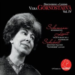 “Discovering a Legend,” the cover says. “Creating a Legend” might be more like it. Vera Gornostaeva is an extraordinary pianist, maybe one of the greats. She builds her performances from fire and tempered steel, but is capable of poetic softness. She embraces huge contrasts, steering with complete control from an explosive fortissimo to a hypnotic sung melody. She takes no half-measures. When you consider that this pianist is totally unknown and has only been reviewed on MusicWeb International
