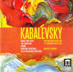 From 1956 the Symphonic Suite: Romeo and Juliet, Op. 56 comprising ten musical drawings was taken from the composer’s incidental music for a Moscow production of Shakespeare’s Romeo and Juliet. This score reveals a broader than normal range of contrasting emotions including some that are ominously dark and tormented. Encompassing contrasting moods the final piece Death and Reconciliation, at nine and a half minutes, could serve as a miniature tone poem. Next the Orchestral suite The Comedians, Op. 26 is taken from the incidental music to the children’s play The Inventor and the Comedians. Consisting of ten varied and colourfully upbeat pieces the rollicking Comedians’ Galop: Presto is frequently used as a television theme and is certainly the best known. The Overture Pathétique and Symphonic poem Spring are relatively short, stand-alone orchestral works from 1960. Although relatively appealing and well crafted neither is remarkable or especially memorable. The final work here is also the earliest: the Overture to the opera Colas Breugnon. Set in 16th/17th century, Burgundy, France and based on a novel by Romain Rolland the three act opera was Kabalevsky's first - of five. Bold, vibrant and upbeat, with a characteristically impatient feel, the Overture was taken up by none other than Toscanini who played it worldwide in the 1940s and 1950s.