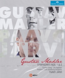 In his interesting introduction to Mahler's First Symphony Järvi focuses particularly on the sounds Mahler requests. For example, the double-bass solo in the third movement must sound effortful, not beautiful. He notes how difficult it is to make a class orchestral player play with an amateur sound. He doesn't succeed. This player is quite superb with only self-conscious hints of an untrained folk musician. One of the characteristics of this performance throughout is the wonderfully characterised wind playing. Watching Järvi it is obvious this is something he cares about deeply. His expressive responses to his superb orchestra add to the pleasures of this performance. My characterisation of his approach is that he goes for extremes: slow music is slower than usual, fast music is faster. This tendency is very much present in the first movement of No.1 but less so in the Second. The third movement returns to extremes of tempo but strangely the very aspect that would have gained from this, the Klezmer-like music in the middle, is less inflected and less wild than that by Claudio Abbado in his Lucerne recording. The first flute puts in a superb performance in this movement particularly. Comparisons are inevitable with Abbado in all Mahler's symphonies. That Järvi holds his own is testimony to the very high quality of his orchestra and indeed his own conducting skill. The finale erupts onto the scene very satisfyingly and here every episode is moulded lovingly so that one is held fascinated throughout a very long performance, close to twenty minutes. The sound is good and the picture nicely detailed without reaching the high standards of the above-mentioned Abbado/Lucerne disc. All in all an attractive performance and recording.
