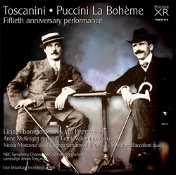 The text in the above two paragraphs is almost word by word what I wrote eight years ago when reviewing an issue of this recording on Istituto Discografico Italiano IDIS 6530/31. I listened to parts of it again before delving into the Pristine version and was quite surprised that the sound was so good. In my memory it was quite atrocious, but I soon found out that I was thinking of the filler: the third act of Manon Lescaut recorded live at La Scala in Milano in May the same year. I was surprised at the amount of orchestral detail that could be heard. Putting on this new re-mastering by Andrew Rose I thought that much more could hardly be expected. In fact, I could not hear much difference in that respect. Neither had I been aware of the wow that Rose mentions in his notes to this issue which he has corrected. What is obvious however is the improved acoustics. Toscanini’s recordings from the 1940s and 1950s are notorious for the dead acoustic –though probably preferred by the conductor who always strived for clarity of detail. Here Andrew Rose has added some reverberation, which gives the feeling of a relatively spacious hall and also makes the voices seem more rounded and warmer; so much so that I have to modify some of my comments in relation to the singing. Primarily it is the ladies that fare better in the Pristine version. Ann McKnight’s Musetta is still very bright of tone and Licia Albanese sounds quite affecting with that extra aura around her voice. Jan Peerce is still less than melting but at least less wooden while no reverberation in the world can mask the strain in Francesco Valentino’s rather four-square delivery. In “manipulating” the acoustics Rose has also lifted the level of the bass frequencies. This occasionally makes the orchestral sound rather boomy but I can live with that.