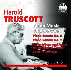 Ian Hobson has taken it upon himself to investigate Harold Truscott in depth - a much-neglected figure in British music. The generously filled CD was made just a few days before the actual centenary of the composer’s birth an event otherwise totally overlooked by the musical establishment. However Hobson is not the first. Back in 1983-4 Peter Jacobs recorded some LPs of Truscott’s piano sonatas for Altarus (sonatas 3, 5, 7, 9, 11, 12, 13, 15) all with superb annotation including musical quotations. Add to this complement a BMS cassette (no longer available) of Jacobs playing sonatas 6 and 17 and a CD of a selection of Harold Truscott's chamber music (Marco Polo 8.223727).