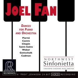 Dark Dancers of the Mardi Gras. Pianist Joel Fan is an enthusiastic and competent guide although perhaps not always displaying the ideal filigree touch. He is accompanied by the Northwest Sinfonietta. Essentially this is a chamber orchestra - with a 6.6.4.4.2 string strength. This leads to some balance issues when the works require full symphonic brass, a problem exacerbated by Reference Recordings' preference for opulent recordings with brass and percussion strongly featured. In Herrera's charming