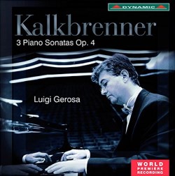 Italian-born Luigi Gerosa has already recorded Kalkbrenner’s 3 Sonatas Op, 1 (from 1807) – Dynamic CDS 7661 – and these still seem to place the composer somewhere equidistant between Haydn and Beethoven. However, the present 3 Sonatas Op 4, published in 1809, clearly show Beethoven’s influence, mostly in terms of musical of language and expressive range, but also – though, to a lesser degree – of technical difficulty, though each work still requires an accomplished player to bring it off in performance. While the first two of the Op 4 set, like their Op 1 predecessors, are three-movement works, the Sonata in A minor, Op 4 No 3, adds a brisk minuet to the mix.