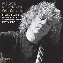 Prokofiev’s Cello Concerto had a troubled history. Cellist Steven Isserlis explains this well in his notes in the CD booklet. Gregor Piatigorsky requested Prokofiev compose a concerto for him, as the composer was living in the U.S. and Europe at the time. Prokofiev completed the first movement and part of the second when he decided to return to Soviet Russia. Piatigorsky had been thrilled with what he had heard of the concerto so far, but Prokofiev decided he could no longer dedicate the work or have the cellist perform its première because of the cellist’s status as a “refugee from the Soviet Union”. The composer finally completed the concerto in 1938 and a little-known cellist premièred it in St. Petersburg with a lack of success. Piatigorsky and Koussevitzky performed it in Boston in 1940; however, the concerto was not revived in Russia until 1947 when the young Mstislav Rostropovich played it with piano accompaniment in Moscow. Prokofiev attended the performance, but apparently was not satisfied with the work and decided to rewrite it. This became the Symphony-Concerto, Op. 125 of 1952, which thanks to Rostropovich was widely performed. It is this later version that is mostly played today, with the original concerto receiving only a rare outing. I had not heard the original concerto before and am glad that I now have had the opportunity with this account by Steven Isserlis.