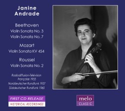The foregoing comes from a review of the first Andrade release on Meloclassic. Now here is the second. There are examples from three recitals – two German and one French – given between the years 1955 and 1960. They capture her with three different sonata partners performing Mozart, Beethoven and – most valuably indeed – Roussel. This isn’t to downplay her performances of the two Beethoven sonatas. She is, after all, captured at something like her peak in these performances and she plays the C minor with brisk, robust chording and a well-honed ensemble with Germaine Leroux. Her cantabile is fine though not overtly personalised, but she certainly captures the slow movement’s more eruptive passages. Accents in the finale are crisp, and trills tight but not of electric velocity. Both the E flat major and Mozart’s B flat major sonatas come from the same June 1960 concert with Hans Altmann. The recording quality here is more resinous and this gives an edge to her tone that’s not apparent in the earlier broadcast. She is rhythmically buoyant and if her intonation slightly strays she remains persuasively taut in the Beethoven, not least in the Rondo finale. In the Mozart she essays one or two quite overt portamenti, something that is not so audible in her more robust Beethoven performances.