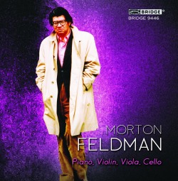 Piano, Violin, Viola, Cello was Morton Feldman’s last work. Not only does it have comparable qualities in scale and content to other mature masterpieces such as Piano and String Quartet (review), but also it seems, if anything, to possess them under an enhancing lens. The spread chords of Piano and String Quartet lend an elaborated, almost baroque flavour to the piece by comparison with the chords of Piano, Violin, Viola, Cello, which drop into the sonic landscape vertically.