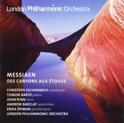 If you want to jump right into the middle of Messiaen’s unique realm which includes the composer’s fixation on birdsong, depictions of mystical skies and atmospheric landscapes combined with striving towards religious awe then Des canyons aux étoiles is the work to have. Under the sensitive direction of Christoph Eschenbach everything is held together well allowing the LPO to communicate with both concentration and clear focus. Especially rewarding is the insightful horn-playing of John Ryan in the changing harmonies of Appel interstellar (Interstellar Call) representing the anguish and salvation of humanity. I’ve never been entirely convinced by this score, disengaged by the numerous pauses. However its grip on the attention can be felt from Part 3 Les Ressuscites et le chant de l'etoile Aldebaran (The Resurrected and the Song of the Star Aldebaran), a remarkable evocation of the giant orange star Aldebaran together with sections of birdsong and “droplets of water and silken rustlings”. Entrancing and remarkably well performed this standout movement had me musing on the eternal nature of the Universe. I am unable to agree with some adverse comment concerning the sound of Tzimon Barto’s piano particularly in Le Cossyphe d’Heuglin (The White-browed Robin) and Le Moqueur polyglotte (The Mockingbird) which sounded generally satisfactory. On the downside I didn’t enjoy the disappointing effect of the wind machine. Unsure exactly what type of machine was employed, it never sounded like anything other than a synthetic canvas being manually cranked over a rotating cylinder.