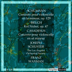 In this restoration from Forgotten Records we have the fruits of an unusual Capitol LP made in 1952. It paired Schuster with the Los Angeles Orchestral Society, about which I know little – pick-up studio band from the film studio orchestras? – directed by none other than Franz Waxman. The repertoire is one standard concerto, one richly expressive Hebraic piece, and a pastiche.
