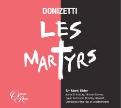 Also important to this Opera Rara issue is the work of Dr. Flora Willson of King’s College, Cambridge. In her new Critical Edition Willson restores the opera’s original French text and reinstates numerous musical passages that were excised from performing editions and have not been heard since its first performance. These are shown in blue in the full libretto, with English translation. In the accompanying booklet Dr. Willson also provides a scholarly essay that puts the composition of Les Martyrs in its historical and musical context. Despite the presence of names such as Leyla Gencer, Renato Bruson and Ferruccio Furlanetto in the 1978 Arts recording (review) this issue is far superior in performance, recording and overall vitality as well as providing the much appreciated background and full libretto.