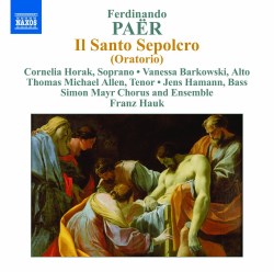 A complete recording of Le Maître de chapelle is a real desideratum and would represent the best place to commence a reassessment. As things stand, apart from the 1979 Leonora, now available on CD, there have appeared in the last decade an Opera Rara disc of highlights from the opera Sofonisba (2006) (review), a Carus recording of the Missa Piena in D Minor (2008) (review), and the discs under review. This means Paer’s comparatively small body of sacred music is disproportionately represented: one can wonder, with some amusement, what the composer himself would have made of this, for there is nothing to suggest that he regarded works like La Passione di Gesù Cristo (as I shall call it here) as central to his legacy.