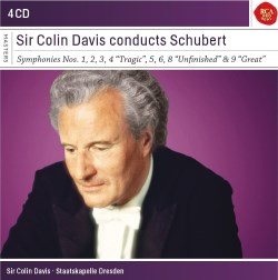 In terms of price this has to be one of the best budget Schubert symphony cycles available. The more luxury feel of Jonathan Nott’s Bamburg set on the Tudor label with its SACD sound and chunky multi-lingual booklet has lots of appeal, with a more intimate balance and less expansive readings but in a different price class. Blomstedt’s Dresden set is equal to this Sony/RCA box with its cardboard sleeves and lack of documentation and can be had cheaply from Brilliant Classics as well as Berlin Classics. This is more Romantic in tone than Davis and not quite as refined but certainly remains a credible option, as do the rather too opulent Herbert von Karajan, the nicely Viennese Riccardo Muti, the musical but occasionally wayward Nikolaus Harnoncourt and many others. For a superbly performed, uncontroversial but highly musical set of Schubert symphonies played by one of the best orchestras on the planet, Sir Colin Davis remains a standard-bearer at any price, and this set fully deserves its sustained availability.