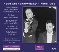 The 1960s radio recordings are in exceptionally fine sound. Meloclassic, as is the norm, offer excellent annotations, provided by Jerry Wechsler. Violin buffs will welcome this release, as the Makanowitzky/Lee partnership, certainly for me, seems to be a sympathetic and effective
